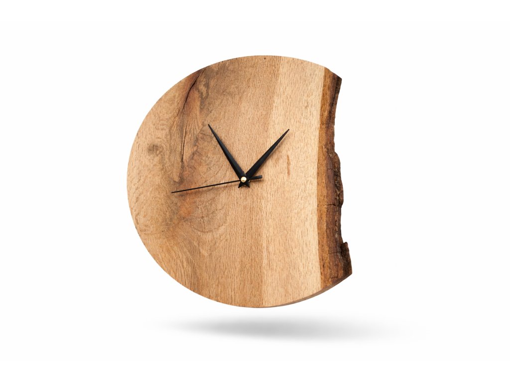 Dva rovnaké kúsky nenájdete! Ak chcete okúzliť seba alebo svojho blízkeho originálnym darčekom z dreva, ktorý sa bude líšiť od všetkých ostatných, sú tieto hodiny so svojským dizajnom určené práve pre vás. Sú ručne vyrobené z masívneho dubového dreva, z ktorého je každý jeden kúsok detailne vyberaný. Práve pre rozličnú textúru, farbu dreva a hranu je každý kus originál. Hodiny sú brúsené a natreté prírodným olejom. Na zadnej časti hodín je háčik pre jednoduché zavesenia na stenu.