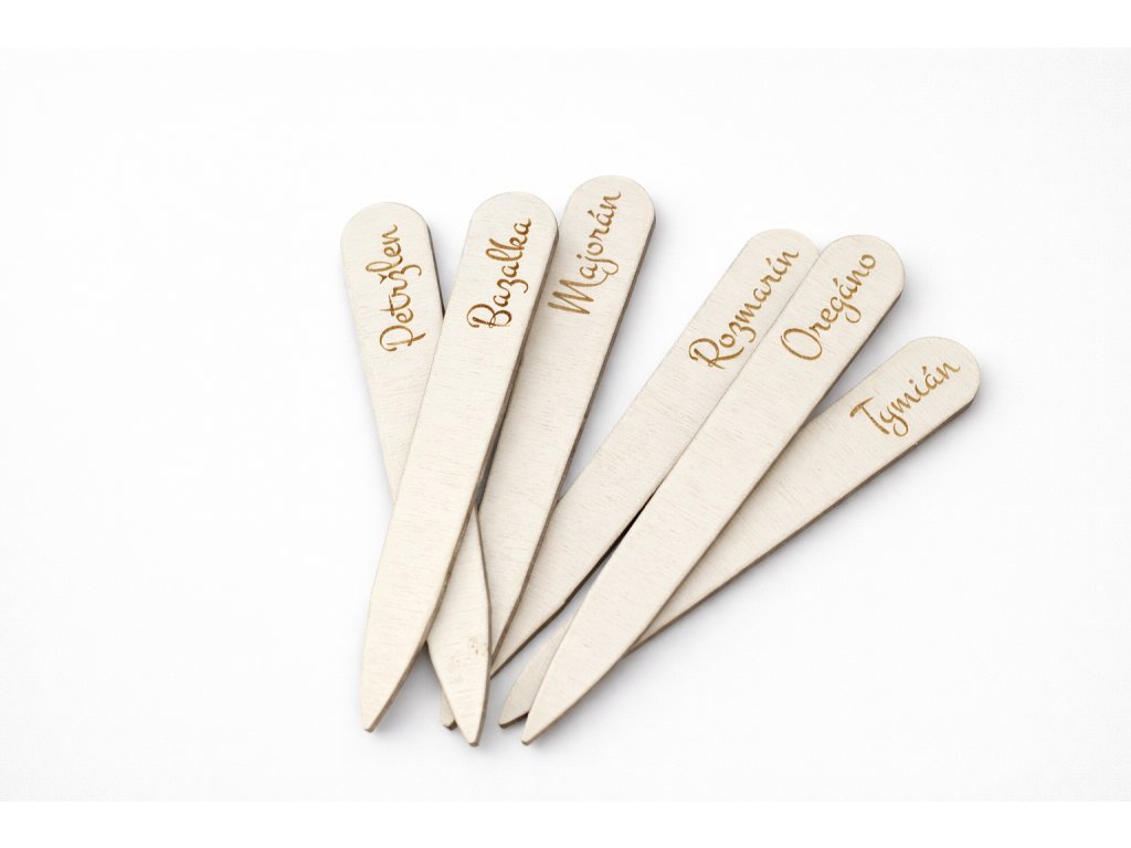 Naše menovky sú vyrobené z prírodného materiálu, ktorý je odolný voči poveternostným podmienkam a ľahko sa čistí. Stačí ich jednoducho vložiť do hliny vedľa vašich byliniek a rýchlo si tak označiť jednotlivé druhy. Navyše, vďaka ich štýlovému dizajnu, sa stanú skvelým doplnkom do vašej kuchyne alebo na balkón.